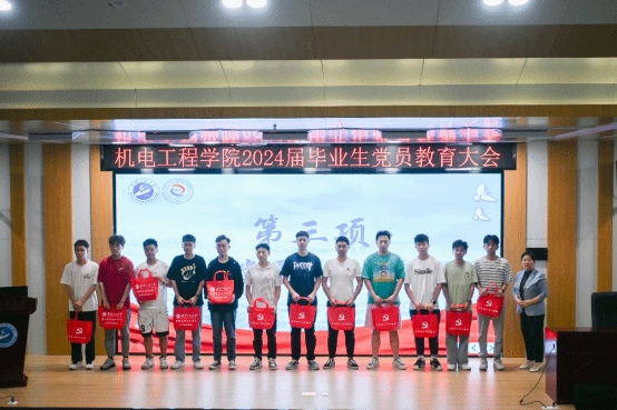 学院党委书记郑玲莉为毕业生党员代表发放了党员教育纪念包。