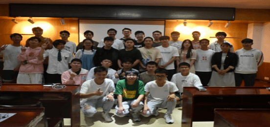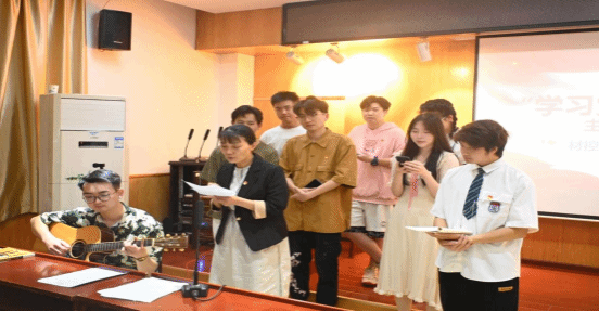 在支部成员风采展示环节中,刘老师与部分支部党员带来合唱歌曲《年轻人的心声》,刘老师以歌曲中“蝴蝶必定经过蛹的挣扎,才会有对坚实如画的翅膀”的这一句歌词勉励大家不畏磨难,化茧成蝶;支部党员胡柏林结合亲身经历与时事热点为大家表演了一场脱口秀,形式创新灵活、内容诙谐幽默,引得同学们阵阵叫好;支部积极分子肖荣耀为大家带来了吉他弹唱,指尖音符飞舞,悦耳的歌曲为同学们带来了美妙的享受;歌曲串烧、舞蹈展示、个人独唱...同学们在挥洒热情、激发活力的同时,尽情施展个人才艺,为全体师生呈现了一场别样精彩的演出盛会。最后,活动在《海阔天空》的合唱中圆满落下帷幕。