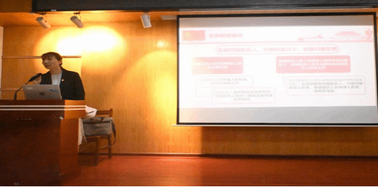 会上,支部书记刘汉红老师从支部基本组成,支部队伍建设、职责体系、宣传制度和党建带团建等四个方面对支部基本情况进行了介绍,重点围绕过去一年中支部主题教育特色活动、支部工作成效、支部运行机制以及支部特色文化品牌等方面展开介绍。