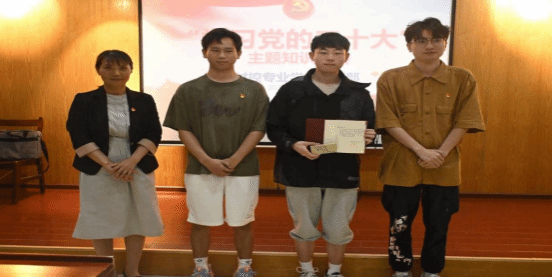 “学习二十大精神”主题知识竞赛中,支部积极分子王神舟荣获一等奖,党员徐康华和积极分子王佳辉荣获二等奖,党员段远飞和积极分子马陈磊、杨柠豪以及张雷义同学荣获三等奖,党员柒龙祥、康继隆、发展对象李子昂、积极分子王瀚毅等荣获积极参与奖。