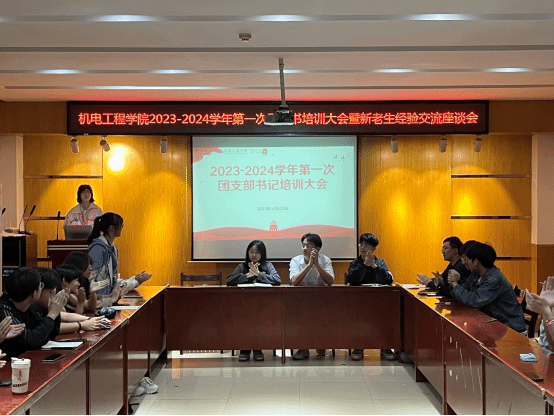 (通讯员 万浩天 周展)10月23日晚,机电工程学院2023-2024学年第一次团支书培训大会暨新老生经验交流座谈会在205会议室举行。太阳集团2138团委学生副书记、学生会主席团成员、2023级全体团支书及学生代表参与本次会议,活动由学院团委组织部主要负责人张嘉祺主持。