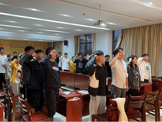 会议伊始,在主持人带领下,与会人员全体起立,奏唱团歌《光荣啊,中国共青团》。