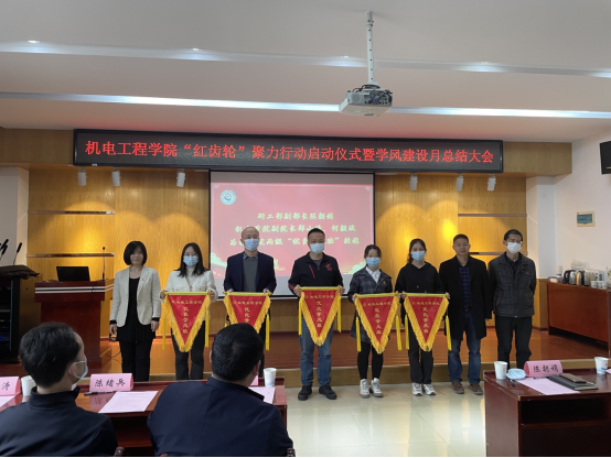 会议第二个阶段是学院学风建设月总结大会。学院2019级辅导员何巧玲首先做学院的学风建设月工作情况汇报。她从统一思想,凝聚共识,“六个常态化”推进全员导学;摸清“底子”,找准“路子”,“六抓六促”强化全过程督学两方面具体汇报学院学风建设的主要内容和详细举措。全院师生凝心聚力、齐抓共管,家校同心、合力育人,共同营造严谨治学、勤奋向善的优良教风和学风。2019级学生杨明杰同学作为学生代表发言,展示了机电学子勤奋学习、善于实践、敢于创新的良好风貌。在校、院“优良学风班”授旗环节,研工部副部长陈朝娟,学院副院长郑小涛、何毅斌为获奖班级的班主任们颁发旗帜。会议最后,2019级研究生代表陈航、2018级本科生代表张靖宇作优秀学子报告会,他们分享自身勤奋好学、刻苦钻研的求知态度,锐意进取、拼搏奋进的学习劲头,砥砺同学们勤奋学习成为青春飞扬的动力,让增长本领成为青春搏击的能量。