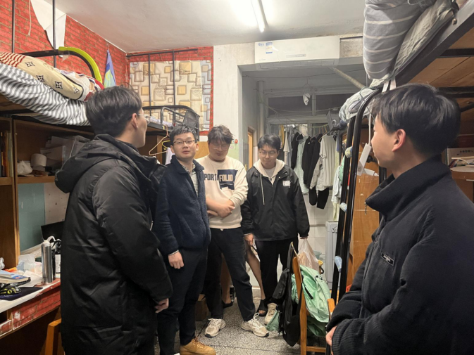 在研究生公寓,副院长何毅斌一行前往研究生宿舍开展了走访工作。何毅斌与研究生同学进行了深入交流,他提醒研三同学,临近毕业,要合理规划好在校学习时间,把握好毕业论文撰写进度,统筹安排好就业、深造机会,为研究生期间的学习、生活划上圆满的句号。