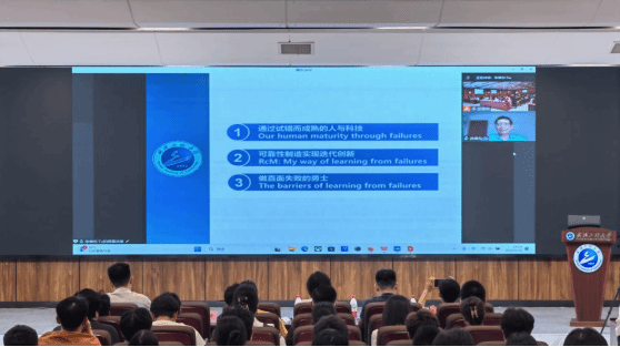 涂善东院士从三个方面向与会师生进行讲授:一是通过试错而成熟的人与科技。涂院士以孔子、亚里士多德、柏拉图等古今中外名人的经历引出“向失败学习”的主要观点,他结合当前计算机学、医学、力学等诸多领域的显著案例指出:科学的本质就是不断的试错与纠错,批判与纠错引领着人类不断进步;二是可靠性制造实现迭代创新。涂院士指出,要在与失败斗争的过程中实现创新发展。他结合个人学习生涯与工作经历强调,安全与可靠性是人文关切的必要关键,亦是时代聚焦下国产设备长周期运行的重大挑战,阐述了可靠性发展的三大阶段:从与失效作斗争中发展损伤理论的安全维修,到高温高压下缺陷的安全评价,再到可靠性制造的安全调控,由此总结了一种全新的制造模式——可靠性制造,实现了迭代创新;三是做直面失败的勇士。涂院士勉励勉广大学子做任何一项事业或者工程,都不要放弃试错学习的机会,只有在试错中发现问题,进一步在试错中成长自己,“唯有牺牲多壮志,敢叫日月换新天”,要把国家的强大富庶作为一个工程师的使命,为国家科技自立自强而努力奋斗。