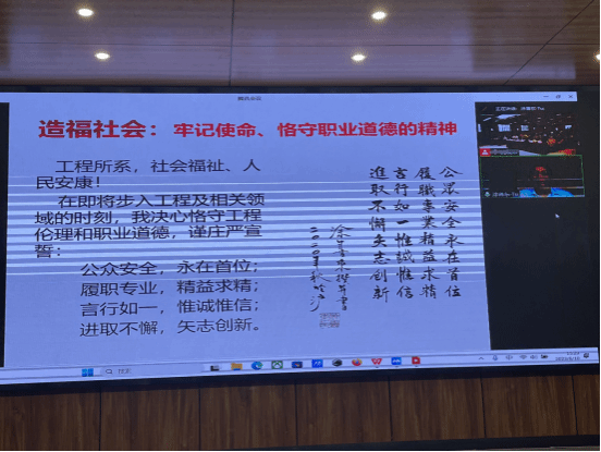 最后,涂善东院士发起“恪守工程伦理和职业道德”的倡议并带领全体与会师生庄严宣誓。相信即将步入工程及相关领域的2023届毕业生必将牢记使命,恪守“公众安全、永在首位;履职专业、精益求精;言行如一、惟诚惟信;进取不懈、矢志创新”的铮铮誓言。讲座在全场热烈的掌声中圆满结束。(审稿  孙丽娜)