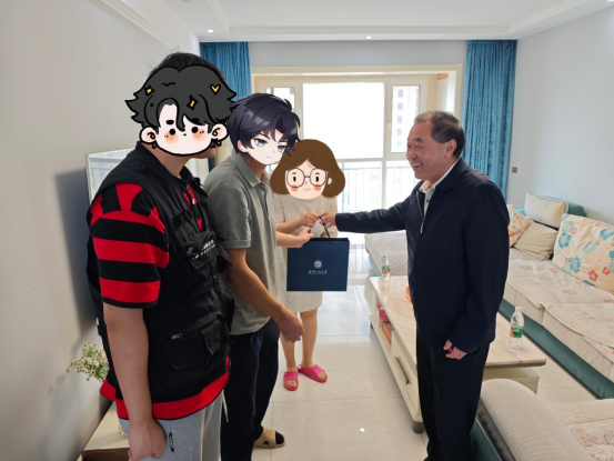 家访结束后,李志旭代表学校向小董一家赠送了融合校史文化的文创礼盒印有学校标志的笔记本、徽章等纪念品,既展现了校园文化独特魅力,也寄托了对学生成长的殷切期望。