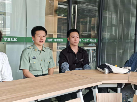 退伍复学代表谢润节、吕天明结合自身经历分别进行了分享,讲述了他们"为什么参军"的初心与"军营带给我什么"的成长蜕变。他们以"兵说兵事"的方式,将新兵连的淬炼、专业训练的突破、战友情谊的温暖等军营点滴娓娓道来,这些真实的军旅见闻让在场同学感受到军营既是磨砺意志的大熔炉,更是成就梦想的新舞台。