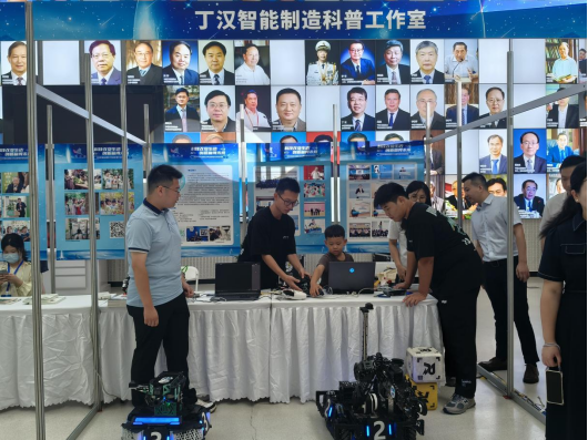 湖北省暨武汉市全国科普月活动中,机电工程学院先进制造与智能机器人研究团队携三款特色机器人亮相湖北省科学技术馆。其中,机甲大师步兵机器人配备高清摄像头与激光雷达系统,展示自主路径规划与多机协同作战能力;工程机器人通过液压驱动机械爪与升降平台,演示场地搭建与物资转运的赛事工程作业;体感格斗机器人则通过动作传感器实现人体肢体动作实时同步,吸引300余名青少年排队体验。活动现场设置技术解说展板,团队成员将机械结构、控制算法等专业知识转化为“听得懂、感兴趣”的科普内容,高校教授团队就传动系统精度等技术细节与研发成员深入交流,实现“高端科技”与“大众科普”的双向赋能。