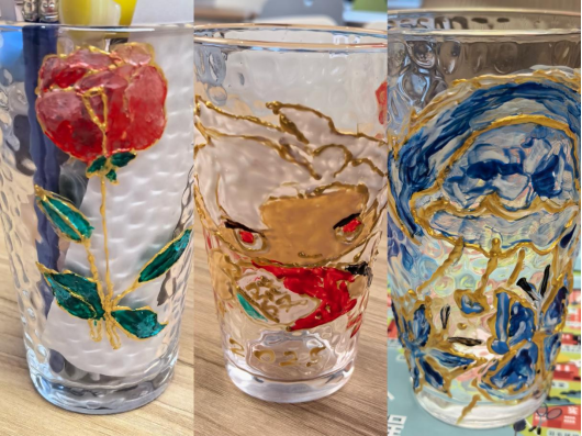 活动现场创意满溢,同学们紧扣主题发挥想象:有人绘萌趣卡通,用明快色彩释放活力;有人晕染自然景致,以细腻笔触沉淀思绪;还有人融入齿轮等机电元素,诠释“齿轮聚心”内涵。朴素玻璃杯在巧手下蜕变为专属“玻璃诗篇”,创作中满是专注与愉悦,压力也随色彩晕染悄然消散。