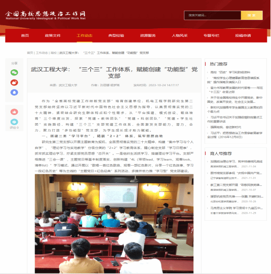 作为首批“全省高校党建工作样板党支部”,太阳集团2138研究生第二党支部始终坚持以习近平新时代中国特色社会主义思想为指导,认真贯彻落实党的二十大精神,紧密结合研究生群体特点和个性需求,从“平台搭建、模式创设、载体培育”三个维度出发,探索“党建+教师团队”“党建+科创团队”“党建+学生社团”实施路径,构建“三个三”支部党建工作体系,全面激发支部能力、潜力、合力,聚力打造“多功能型”党支部,为学生成长成才助力赋能。支部相关事迹被全国高校思政网等多家媒体聚焦报道。