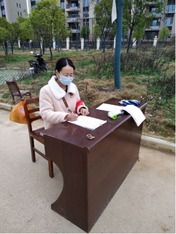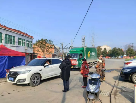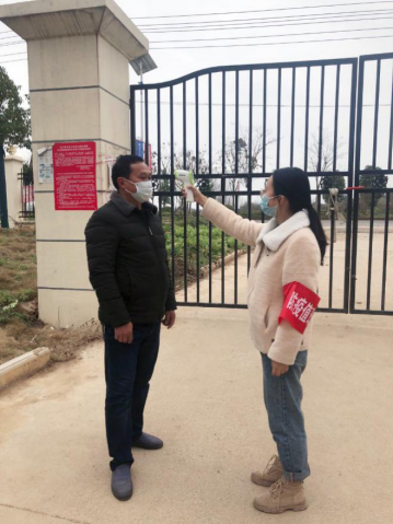 张姣同学主要负责对本村交通要道上进出车辆的出入时间、目的进行记载,测量每位司乘人员体温,并登记相关信息。