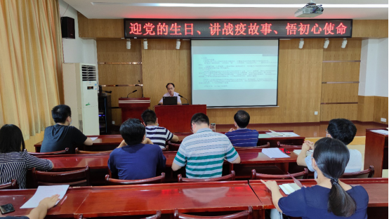 会上,院党委书记李芳讲授微党课《党旗飘飘齐心抗“疫”》,通过一个个鲜活的事例,一句句生动的话语,一幅幅感人的图片,讲述了党中央坚持全国一盘棋、集中统一领导疫情防控的制度优势,讲述了学院党委、基层党支部、师生党员、干部牢记人民利益高于一切,在疫情防控斗争中践行初心使命的生动事迹,讲述了中国助力全球抗疫、推动构建人类命运共同体的责任担当。李芳书记指出:“七一”前后,学院全体党员干部师生要以党支部为单位,以“迎党的生日、讲战疫故事、悟初心使命”为主要内容,召开一场组织生活会。鼓励支部党员说身边故事、讲切身体会,形成具有支部特色的“战疫故事汇”。