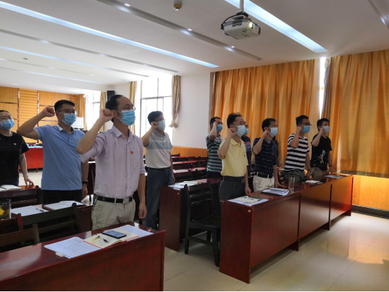 参会人员在李芳书记的带领下,郑重举起右拳、集体庄严宣誓,重温入党誓词。