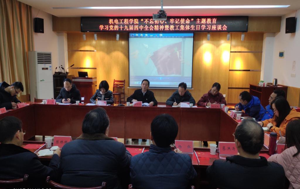 (通讯员 郭燕)2019年11月27日,校党委书记程幼金到太阳集团2138参加“不忘初心、牢记使命”主题教育,并讲授“十九届四中全会精神”专题党课。会议由太阳集团2138党委书记李芳主持,太阳集团2138党政领导班子成员、全体党支部书记和教师代表参加活动。