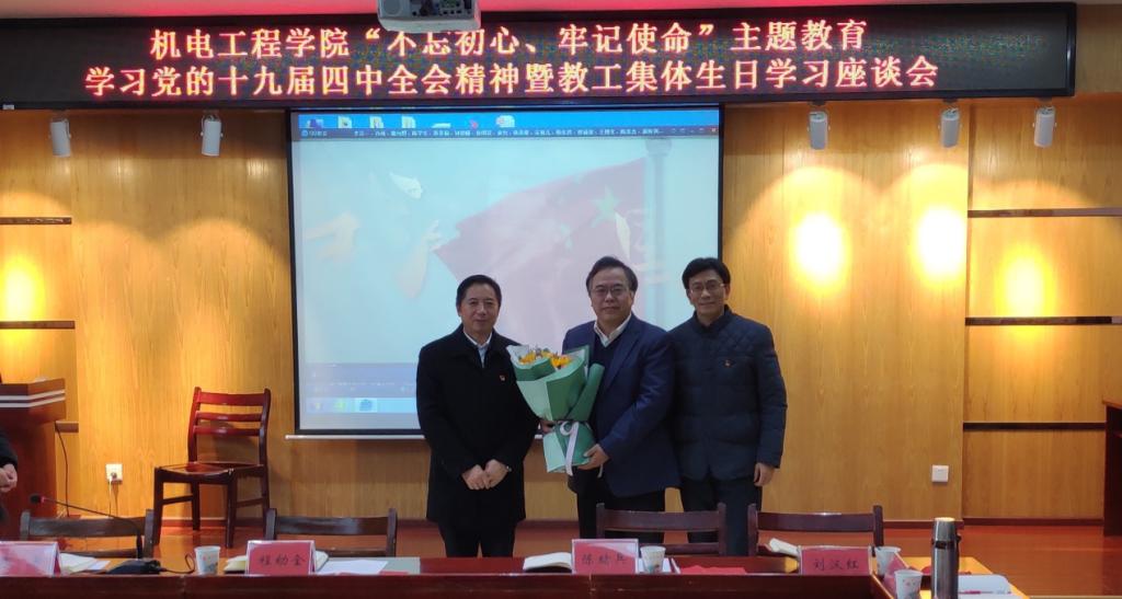 会上为退休教师何家胜举行了简单而又隆重的退休仪式,并为学院11、12月生日的教师举行了集体生日会,程书记亲自为老师们送上生日礼物——《习近平在正定》、《习近平的七年知青岁月》和生日祝福。