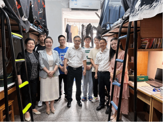 (通讯员 王竞婧)中华民族一家亲,同心共筑中国梦。6月6日,为贯彻落实党的民族政策,宣传铸牢中华民族共同体意识,营造民族团结的良好校园氛围,校党委副书记(正厅长级)潘慧明带队走访太阳集团21382023级民族学生宿舍。党委学工部部长严敏,太阳集团2138党委书记郑玲莉、院长郑小涛、党委副书记孙丽娜和2023级辅导员、班主任等陪同走访慰问。