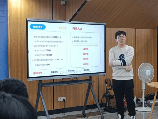“参与科创竞赛不仅要有扎实的专业知识,更要有办公、设计、算法、电路设计等必备基本技能。”活动伊始,特邀嘉宾2022级机制03班顿魏星同学对自己的学科竞赛经历进行分享,将科创竞赛的经验系统地分为赛事选择、具体赛事举例分析、参赛项目来源和工作内容、路演和答辩要点四个大方面,为在场的同学们呈现了一幅完整的科创竞赛流程图。他对A类赛事进行了针对性的分析,结合本院学生专业涉猎的范围,为大家梳理出了相关可参与的高质量赛事。