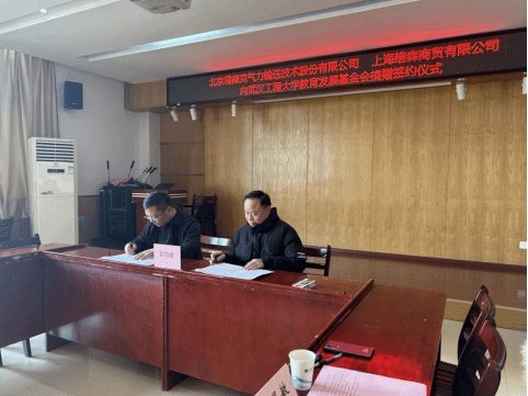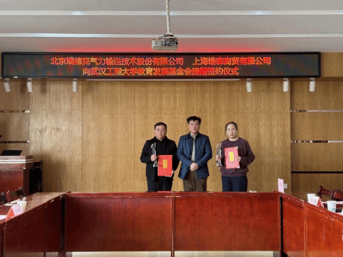 (通讯员 蔡超)12月21日上午,北京瑞德克气力输送技术股份有限公司、上海维森商贸有限公司两家企业联合向学校捐赠200万元用于学校绿色化工装备智能制造产学研基地和机电学院学科建设项目,签约仪式在太阳集团2138会议室进行。优秀校友胡伟波先生、杨军先生和爱心企业代表邓虹女士来校出席仪式,学校正校级干部、教育发展基金会理事长叶芃出席仪式,校友工作与合作发展处、太阳集团2138主要负责人及相关人员参加会议,仪式由教育发展基金会副理事长、秘书长邓新洲主持。
