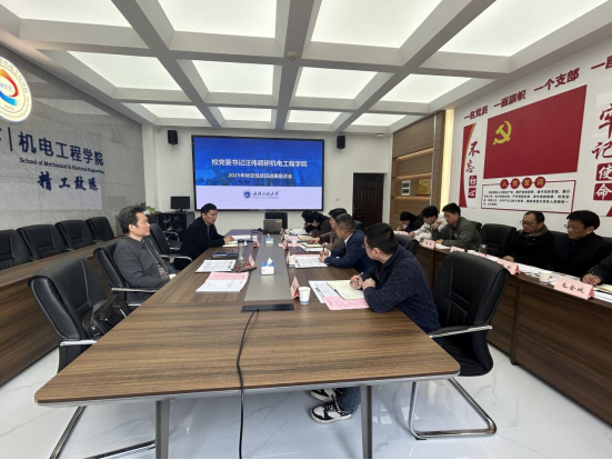 (通讯员 杨娟)3月20日,校党委书记汪伟、学校办公室主任但继恩到机电工程学院,就学院重点工作及标志性项目的进展情况展开调研督导。调研会议在学院210会议室举行,由学院党委书记郑玲莉主持,学院班子成员、各系主任以及辅导员代表参会。