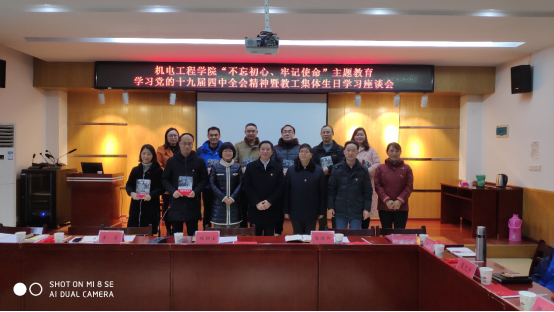 主题教育期间,校党委书记程幼金多次深入学院,与学院领导班子交心谈心。11月27日,程书记再次来到学院参加“不忘初心、牢记使命”主题教育,并讲授“十九届四中全会精神”专题党课。会上,程书记为学院11、12月生日的教师送上生日礼物——《习近平在正定》、《习近平的七年知青岁月》和生日祝福。生日座谈会不仅给学院教职工提供了交流互动的平台,也让大家感受到了家的温暖,更增强了学院教职工凝聚力。