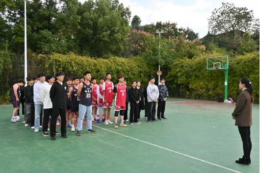 谢姗姗对“新生杯”篮球赛的顺利举办表示热烈祝贺,并向全体参赛学子寄予殷切期望。她鼓励大家在赛场上勇于拼搏、释放潜能、突破自我,充分展现机电学子的青春气魄与昂扬风采。并提出三点希望:一是要传承体育精神,在竞技中点燃热爱,让机电风采在赛场闪耀;二是要锤炼坚毅品格,在挑战中突破极限,以拼搏姿态收获成长;三是要凝聚团结力量,在协作中同心聚力,携手奔赴热爱与目标。