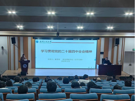潘慧明以深入学习贯彻党的二十届四中全会精神为主题,围绕全会的重要地位、《建议》起草过程、“十五五”时期战略任务及核心举措展开系统宣讲。他强调,党的二十届四中全会是在我国即将胜利完成“十四五”规划主要目标任务,进入基本实现社会主义现代化夯实基础、全面发力关键时期召开的一次具有全局性、历史性意义的重要会议,深入学习贯彻全会精神是当前和今后一个时期全校首要政治任务。潘慧明从《建议》的起草背景与过程入手,详细阐释了“十五五”时期我国经济社会发展的战略任务和重大举措,重点聚焦中国式现代化建设新征程,深入解读了“十五五”规划建议中教育科技一体化、党的全面领导等核心内容。他指出,教育科技一体化是推动高质量发展的关键支撑,需准确把握教育、科技、人才协同推进的新要求;党的全面领导是根本保证,要将党的领导贯穿于办学治校全过程各方面。