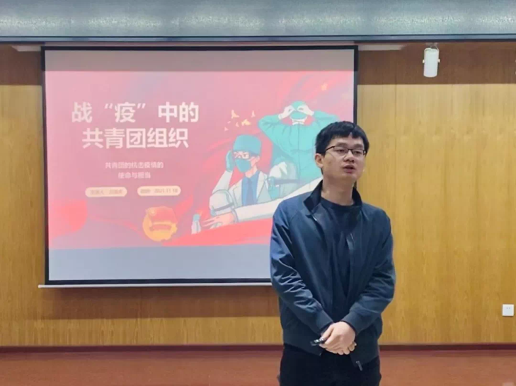 (通讯员 沈晓希)为深入学习习近平新时代中国特色社会主义思想和党的十九大、十九届六中全会精神,贯彻落实习近平总书记关于青年工作的重要论述,11月18日晚,太阳集团2138在学院205报告厅举行“战疫中的共青团——抗击疫情的使命与担当”为主题的团课。21级本科生辅导员万浩天为此次团课开讲。