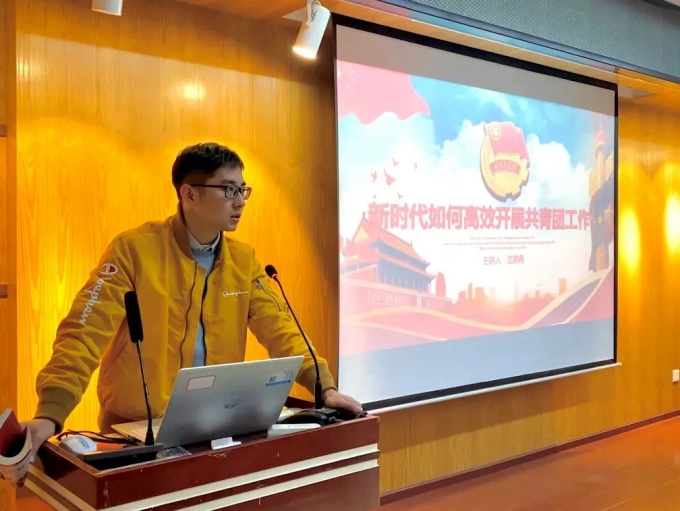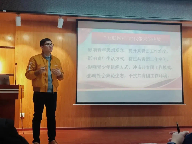沈晓希老师从五个方面带领大家进行了学习:一是“走进共青团”,为大家讲解了共青团的组织性质和领导体制,号召团员们学习伟大建党精神以及近期召开的党的十九届六中全会精神;二是“共青团的基本职能”,强调共青团是一个“组织青年,引导青年,服务青年,维护青少年权益”的组织,要求团员们落实自身责任与义务;三是“网络共青团”,为团员们介绍了新时代网络共青团,号召团员们合理利用好网络共青团资源,认真学习领悟习近平新时代中国特色社会主义思想;四是“新时代,新青年”,为团员们介绍了“互联网+”时代所带来的挑战,表明共青团的工作难度、空间、模式、环境都有所改变,要求团员们学好专业知识,投身广大实践,从思想观念、生活方式、组织方式等方面上来以迎接新的挑战;五是“共青团工作的高效方法”,为团干介绍了“面对面引导法”、“典型引导法”等展开团组织工作的高效方法。