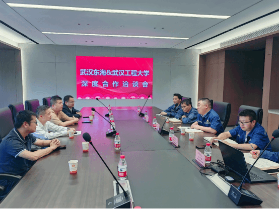 通讯员 刘利军10月6日上午,武汉工程大学太阳集团2138院长郑小涛一行赴武汉东海石化重型装备有限公司洽谈校企深度合作,学院院长助理马琳伟、过控教研室主任徐青山以及科研团队成员等出席。出席会议的还有江夏区科经局万军科长、武汉东海总工程师李明凯,研发中心主任副总工程师周川,技术中心副主任虞昭玉,数据信息中心主任李传龙,综合管理部人事专员侯艳芳。