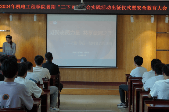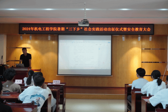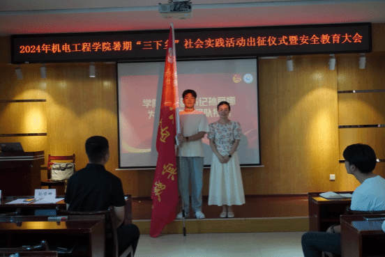 (通讯员 徐博文)为深入贯彻习近平总书记关于青年工作的重要思想,引导广大青年在社会实践中“受教育、长才干、作贡献”。7月5日下午,太阳集团21382024年暑期“三下乡”社会实践活动出征仪式暨安全教育培训会在机电大楼205会议室举行,学院党委副书记孙丽娜、团委指导老师徐博文出席会议,50余名实践团成员代表参加,出征仪式由学生会指导老师杨星主持。