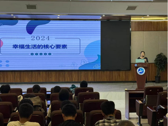 华中农业大学大学生社会工作系副教授许彩丽以“幸福生活的核心要素”为主题,从“我们为何讨论幸福议题?”“探讨幸福是什么?”“剖析走向幸福的阻碍。”“通往幸福的路径”四大方面,以通俗易懂的语言、生动鲜活的案例深入浅出地介绍了积极心理学的相关理论,并从贴近学生生活的视角向同学们讲述了如何利用相关理论在生活中进行自我调节,获得积极情绪,感受身边的幸福。