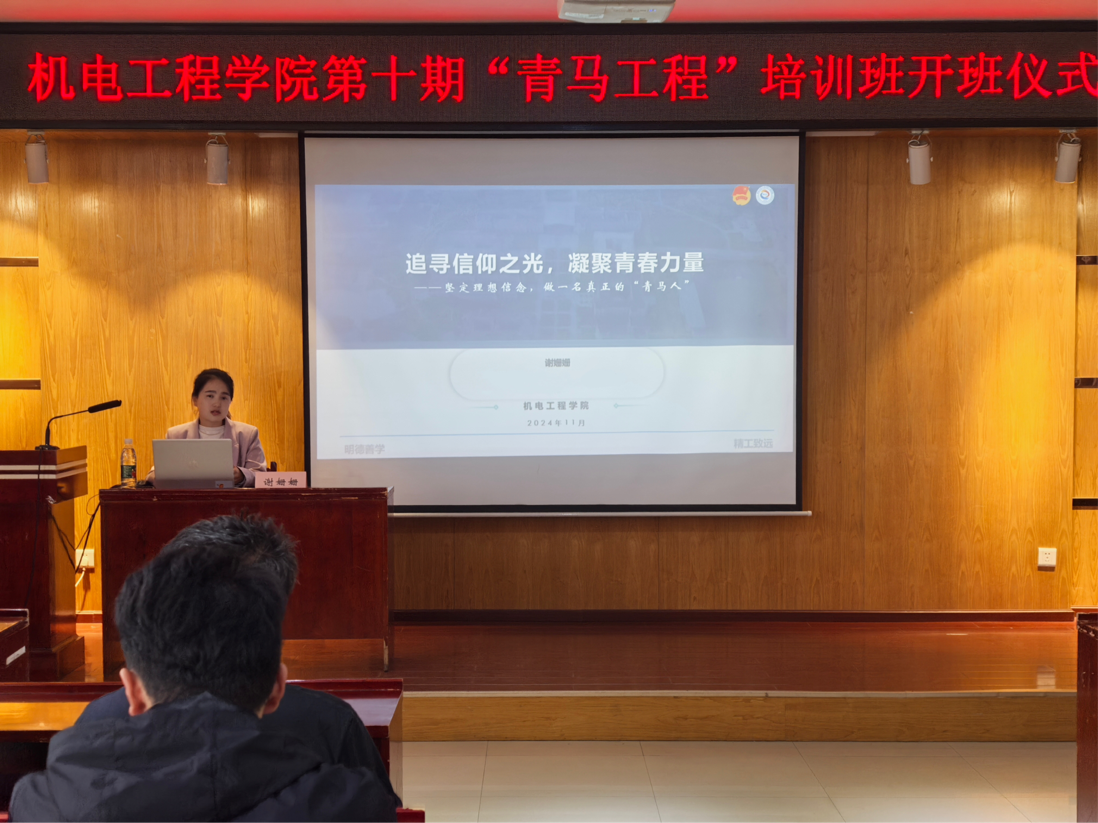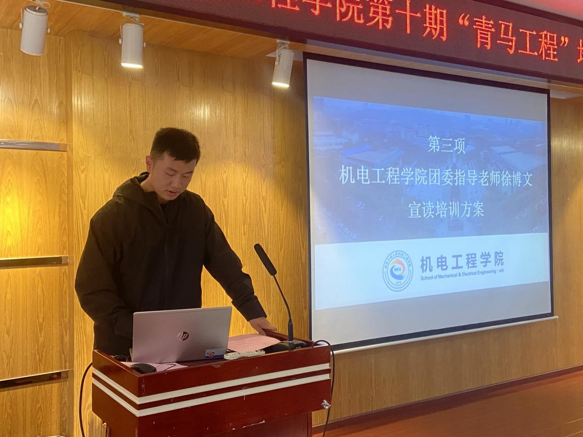 学院团委指导老师徐博文宣读《机电工程学院第十期“青年马克思主义者培养工程”实施方案》。