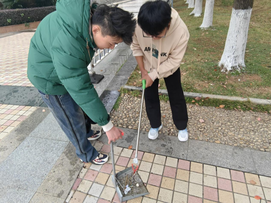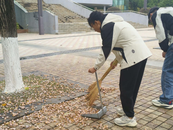 11月17日,志愿者们在钟楼和大礼堂开展了校园清洁活动,他们分工合作、密切配合,将场地中花坛、地面残余的垃圾以及落叶清扫干净。