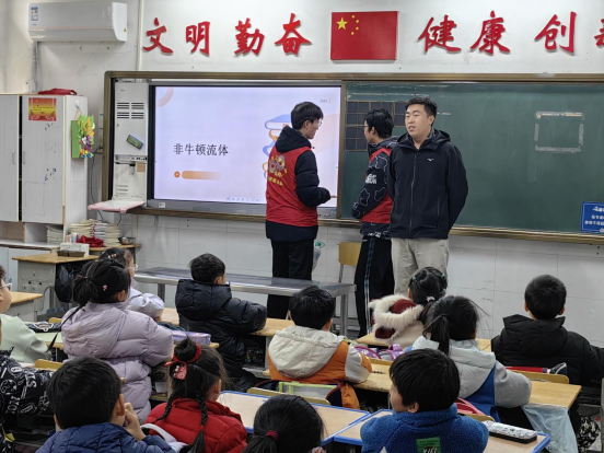 “非牛顿液体真奇妙,轻轻触碰如水流,用力搅拌却变硬,好像会变小魔术!”“红齿轮”志愿服务团带领小朋友们用日常生活中的淀粉和水进行了非牛顿液体实验。在实验中,小朋友们亲眼见证了淀粉加水后的混合物在快速搅拌下变得坚硬如石,而缓慢搅拌时又如水一般流动这一神奇的现象。小朋友们纷纷跃跃欲试,亲自动手体验科技的乐趣。