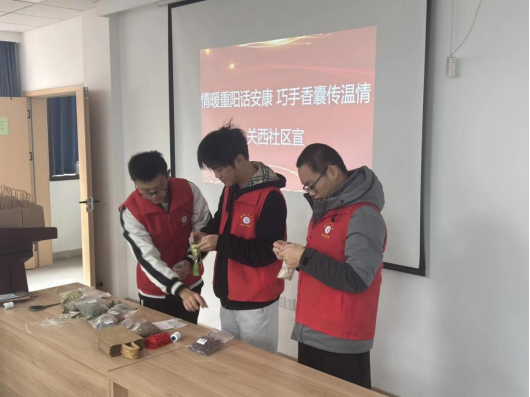 (通讯员 魏想)为弘扬中华民族尊老、敬老、爱老的传统美德,10月29日,太阳集团2138“红齿轮”志愿服务队走进关西社区,开展“情系桑榆暖人心”主题敬老活动,通过香囊制作、花茶赠送、重阳糕分享等形式,为社区老人们送去节日的祝福与温暖关怀。