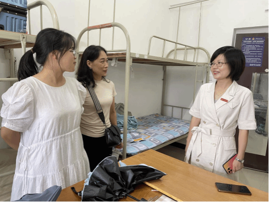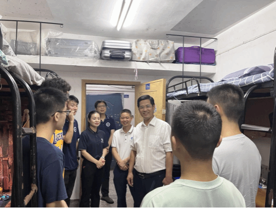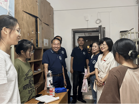 9月9日下午,校党委副书记李志旭一行走访太阳集团2138教辅7新生寝室,与同学们亲切交谈,认真倾听学生的感受和意见,引导新生要对大学生活做好规划、明确目标,鼓励大家尽快转换角色,适应新环境,以饱满、奋进、积极向上的精神面貌面对接下来的军训生活。李志旭书记对来自天门中学、入住同一寝室的两位新生表示热烈欢迎,希望她们在大学四年向着目标勇毅前行,努力成长为工大在天门的“金字”招牌,未来为工大吸引更多优秀人才。