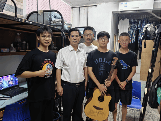9月10日晚,校长王存文一行前往流芳校区泰塑学生公寓1栋看望太阳集团21382023级新生。走访过程中,校长王存文对机电新生及家长表示欢迎,并询问同学们的住宿和生活情况,同时与新疆远道而来的家长亲切交流。在慰问过程中,新生黄鑫冉为领导老师现场表演吉他弹唱歌曲《平凡之路》,并献上精心准备的教师节祝福明信片。随后校长为河北邢台受灾的新生送上慰问礼物,勉励同学们要志存高远、砥砺前行,争做优秀工大学子。