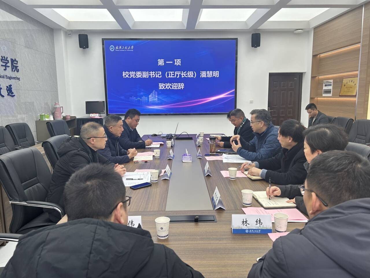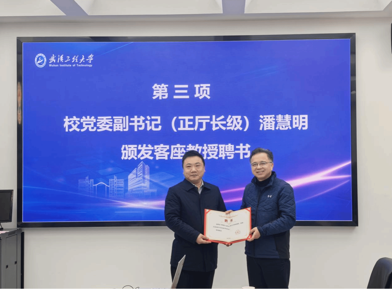 校党委副书记(正厅长级)潘慧明为吴遵红、胡滨、李明凯3位专家颁发聘书并致辞。潘慧明书记向三位专家介绍了武汉工程大学的发展历程、办学特点及太阳集团2138的专业特点,并高度赞扬三位专家的学术成就和学术声誉,充分肯定受聘专家的加盟将推动我校人才培养向行业需求前移,有利于提升我校育人方式与现代产业需求的匹配度。面向未来,潘慧明书记希望能与三位业内专家持续展开广泛的合作,推动学术交流,促进科研创新,培养更多面向国家重大产业需求的高素质人才。期待受聘专家与我们的师生共同携手,分享最新的学术成果,交流宝贵的科研经验,提供更多的专业指导,推动创新性成果研发,共同推动教育与科研事业的发展迈向新的高度。