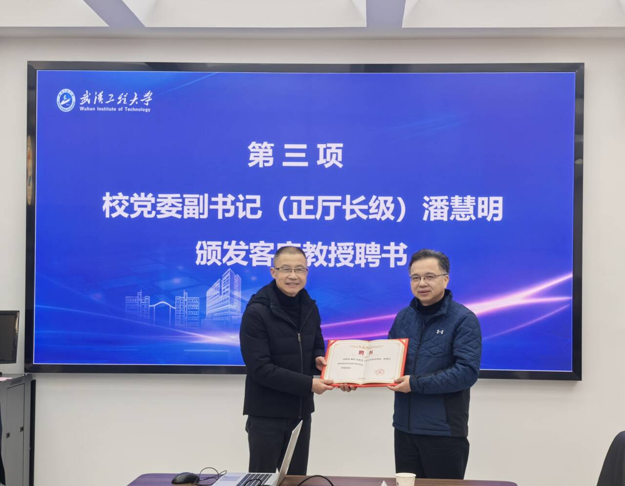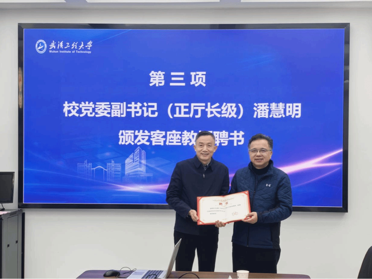 (通讯员 杨娟)12月26日上午,原湖北省特种设备检验检测研究院院长、中国特种设备检验协会监事长吴遵红、武汉市锅炉压力容器检验研究所总工程师胡滨、武汉东海石化重型有限公司总工程师李明凯应邀来校交流,并受聘为我校客座教授。受聘仪式在太阳集团2138210会议室举行,校党委副书记(正厅长级)潘慧明、继续教育学院院长严也舟以及太阳集团2138班子成员参加仪式,仪式由太阳集团2138院长郑小涛教授主持。