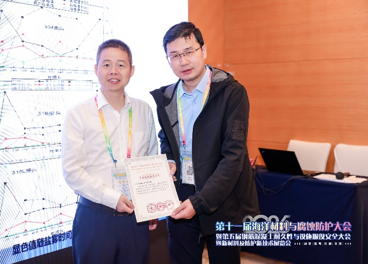 会议围绕海洋耐蚀新材料及新技术、海洋工程装备及高技术船舶腐蚀防护、电化学保护与应用、电力设备腐蚀与防护技术、高端装备设施腐蚀与防护、涂层与表面处理技术、钢筋混凝土耐久性与设施服役安全等主题做了百余场学术报告,深入交流探讨了腐蚀防护的学术前沿与关键科学问题。郑小涛担任“海洋材料腐蚀行为及机理&微生物腐蚀与生物污损&腐蚀监检测与评价技术”分会场主席,统筹引导报告安排与学术评议,并就海洋材料腐蚀机理、复杂环境下材料服役行为等热点议题与参会专家进行了深入交流,推动了相关领域的学术合作与研究进展。