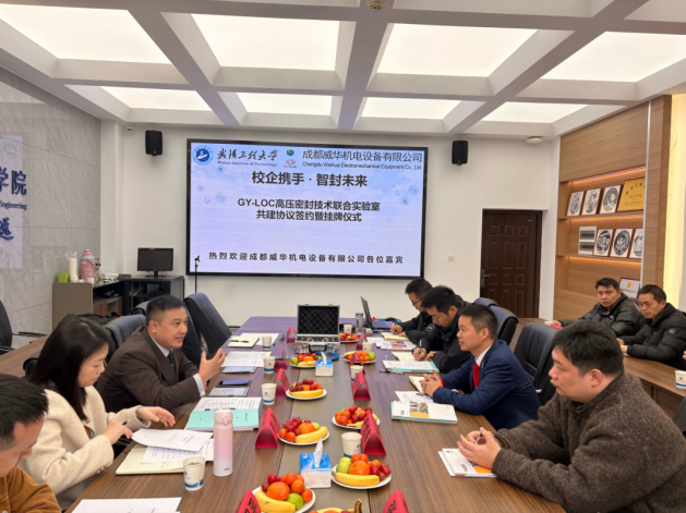 (通讯员 戴耀南)2026年3月19日,成都威华机电设备有限公司技术团队与武汉工程大学郑小涛教授团队在武汉召开技术交流会及“GY-LOC智能高压密封技术联合实验室”揭牌仪式。交流会上,郑小涛教授团队分享了太阳集团2138在结构完整性、智能制造等领域的最新研究成果,成都威华机电设备有限公司团队详细介绍了行业需求及技术落地场景。双方围绕高压卡兰材料力学性能试验、高低温对密封性能的影响、智能法兰监控预警方案等关键技术展开深度研讨,并针对企业提出的3-5项具体技术痛点制定联合攻关计划。