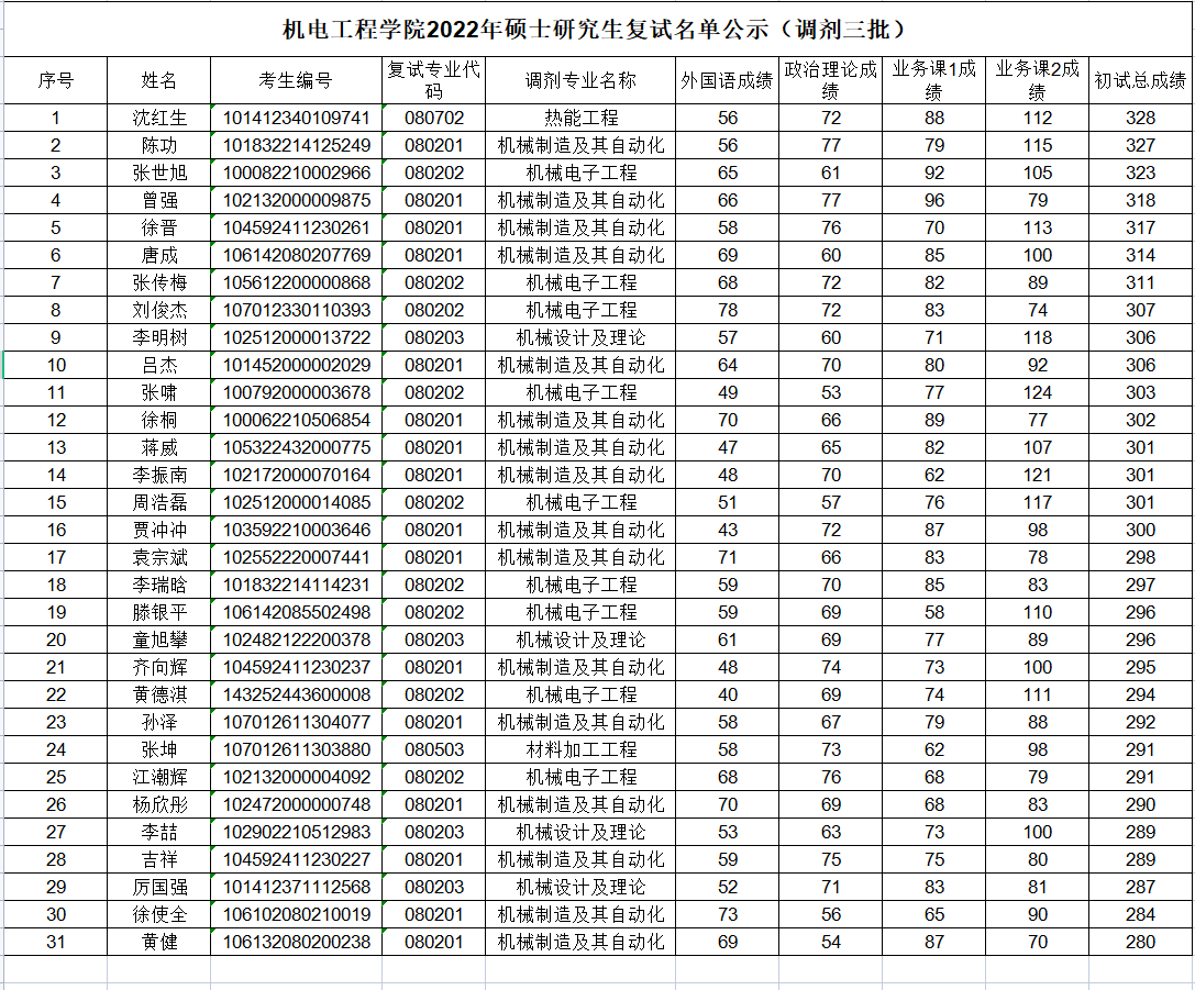 太阳集团21382022年硕士研究生复试名单公示(调剂三批)