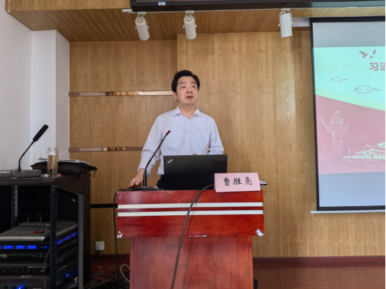 曹胜亮教授以习近平新时代中国特色社会主义思想的世界观和方法论在“两会”报告中的贯彻落实》为题,从“讲在前面,我们一起温故”、“报告内容,我们一起学习”、“需要说明,我们一起关注”、“展望明天,我们一起憧憬”等四个方面,全面系统地对党的二十大报告、习近平新时代中国特色社会主义思想的科学体系、核心要义、实践要求等内容进行提纲挈领、深入浅出地阐述和剖析。整场报告主题鲜明、站位高远、视野开阔、内容丰富,对全面把握习近平新时代中国特色社会主义思想的世界观和方法论,坚持好、运用好贯穿其中的立场观点方法,进一步提升学院内涵建设水平,持续深入开展主题教育具有十分重要的指导意义。