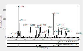 图3 25 V电压下阴极表面结垢的XRD衍射谱图(A—文石;C—方解石)